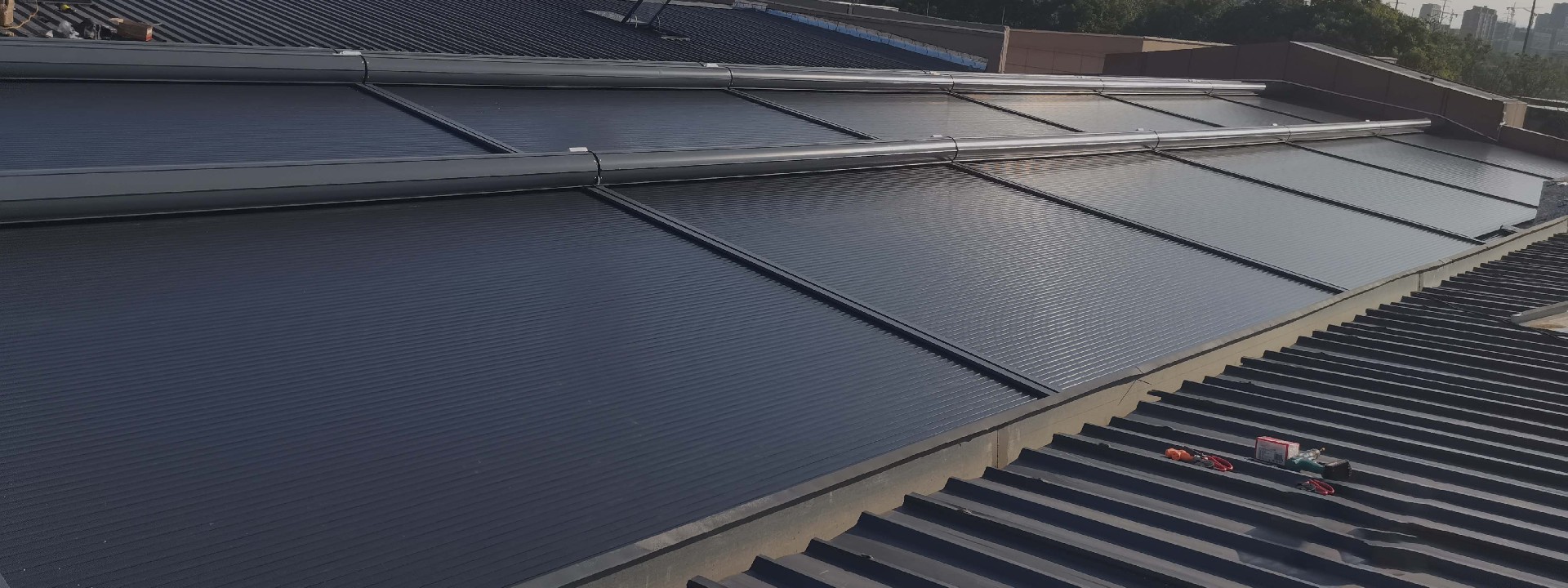 卷軸式方案,面料運(yùn)行方向與原有結(jié)構(gòu)貼合度高,最大程度保持原有屋面結(jié)構(gòu)美觀